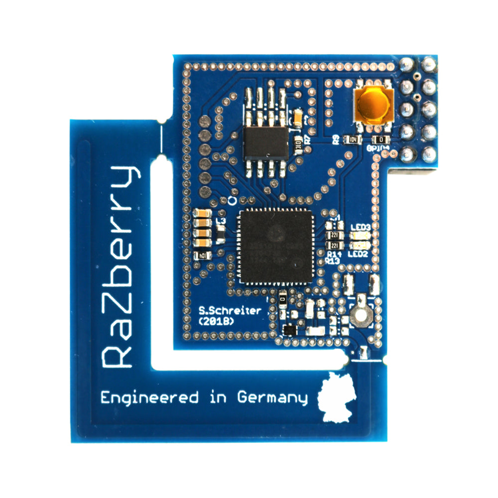 RaZberry is uitbreidingskaart die bovenop een RaspBerry PI GPIO connector past en de USB poorten niet blokkeert. Het apparaat wordt gevoed door het PI board met 3.3V en communiceert met UART TTL signalen (Rx/Tx). Razberry is compatibel met alle Raspberry Pi modellen. De kaart bevat een Sigma Design ZM5101 Z-Wave module (Z-Wave 500)